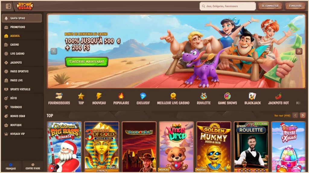 Stone Vegas est un acteur relativement récent sur le marché, arborant un style original inspiré de l’âge de pierre. Malgré cette thématique préhistorique, la technologie utilisée est à la pointe du progrès. Le casino propose un bonus de bienvenue généreux, incluant souvent le fameux « Bonus Crab », un jeu interactif permettant de décrocher des récompenses supplémentaires. Stone Vegas se distingue par une bureaucratie réduite lors de l’inscription et un large choix de méthodes de paiement, y compris les virements bancaires instantanés. C’est un excellent choix pour ceux qui cherchent une expérience visuelle fraîche et des règles transparentes.