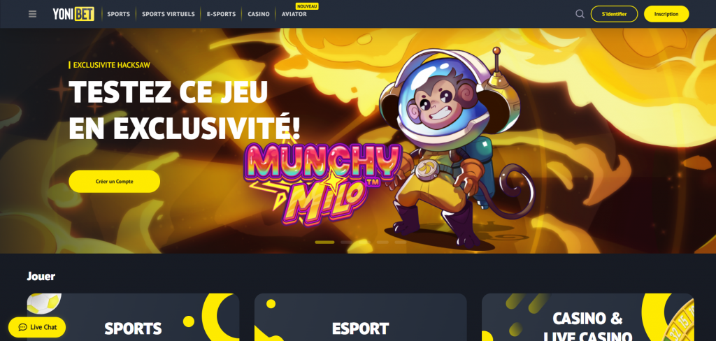 Yonibet est un portail de jeu polyvalent qui combine avec succès le casino classique et un bookmaker complet. La plateforme attire les joueurs grâce à son système de fidélité « Yoniclub », où les mises génèrent des pièces échangeables contre des cadeaux réels dans leur boutique. L’interface arbore un style futuriste et la navigation permet de basculer rapidement entre les machines à sous, le casino en direct et les paris sportifs. Yonibet est également réputé pour ses tournois dotés de cagnottes importantes et ses mini-jeux exclusifs comme Aviator, devenus très populaires ces dernières années.